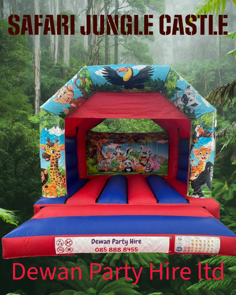 THIS PARTY CASTLE CAN COME WITH MANY DIFFERENT THEMES WITH ADDITIONAL €20 SUCH AS FORTNIGHT, PAW PATROL, COCO MALON, JUNGLE, FOOTBALL, LIVERPOOL AND SO ON. PLEASE CONTACT US TO ENSURE AVAILABILITY OF YOUR CHOICE OF THEME.